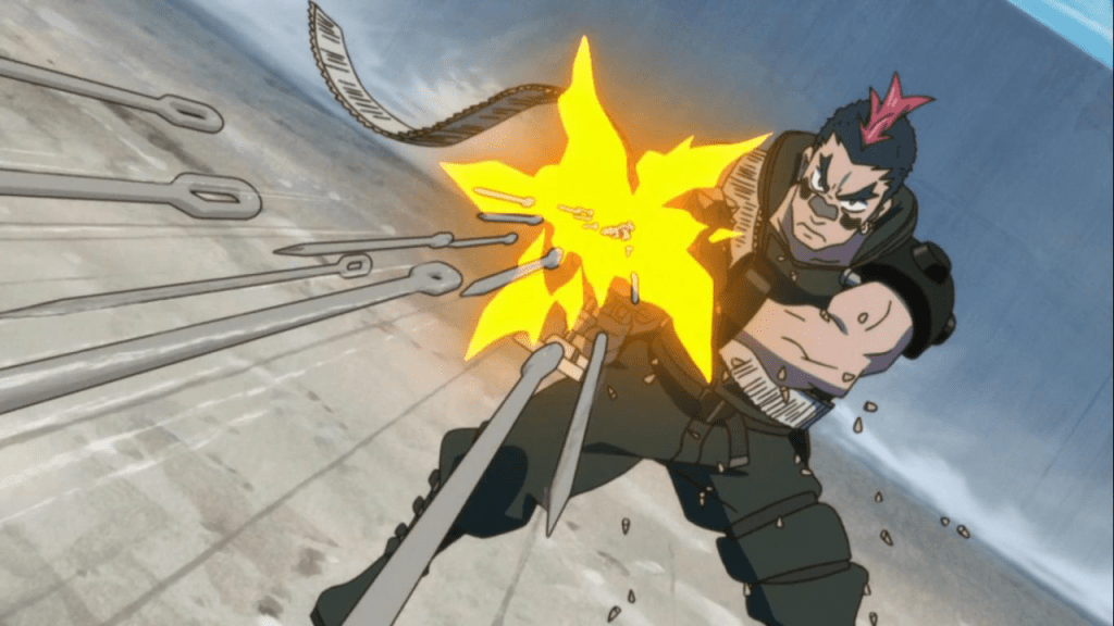 Kill la Kill gets back to some serious action this time around, and introduces us to a new badass of a character who, amusingly enough, appears to be a big fan of sewing. Hell, both of his machine guns are actually sewing machines that shoot pins and needles, and the dude is equipped with grenades that resemble spools of thread (and to top it off, he’s got one awesome mohawk). It’s the little things like this that give Kill la Kill its signature, ludicrous vibe. Also, we finally get to see another one of the Elite Four, Nonon Jakuzure, take on Kinagase as the leader of all non-athletic clubs. With orchestrated horn music playing in the background as we watch Ryuko dash through the school and discover one by one all the clubs Kinagase has obliterated in his wake, it’s just parodical nonsense and good fun until the two finally face off against each other. Their first battle outside of the school is another good taste of the action that made episode 3 so great, and we even get treated to a couple of heartfelt scenes between Ryuko and Senketsu that simply further establishes their bond to each other.